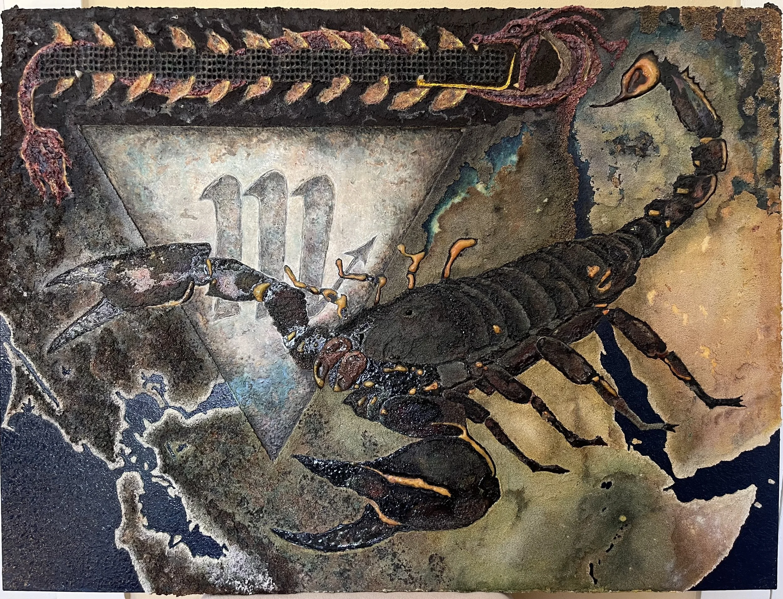 14 gemstones scattered through geometry create a field of intensity and transformation. Like the sign it’s named for, Scorpio dissolves illusions and brings hidden truths to light. It carries the energy of death-rebirth cycles, empowering its keeper to