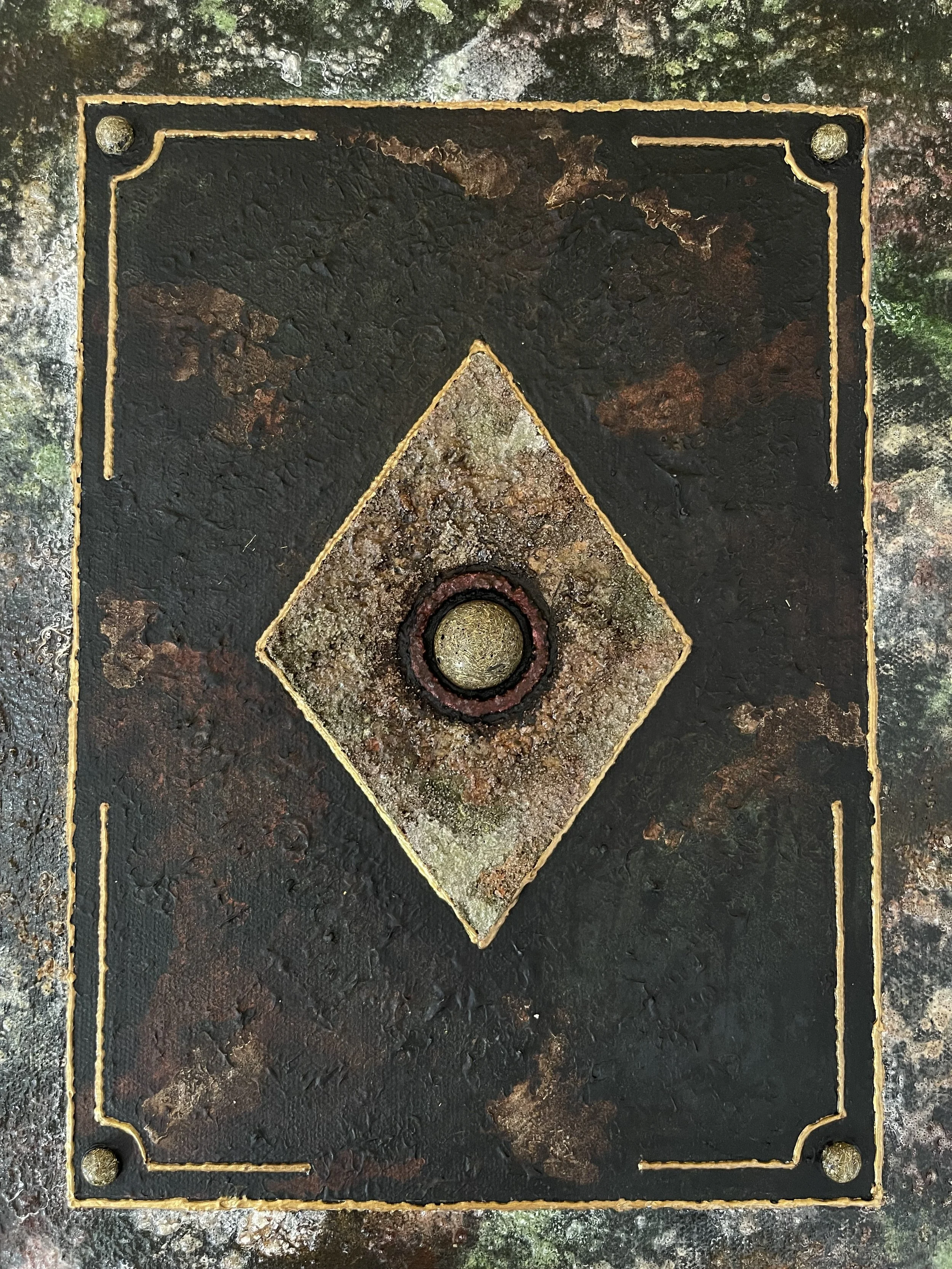 Medium: Mixed media with orgonite, copper, crystals, gemstones, acrylic on canvas